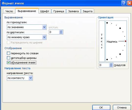 Рисунок 1 – Элементы диалогового окна ФОРМАТ ЯЧЕЕК