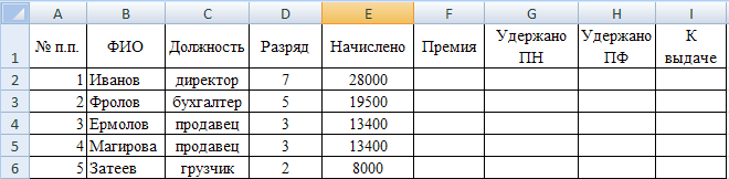 Задание 1. Создайте электронную таблицу для расчета заработной платы сотрудников организации (рисунок 4).