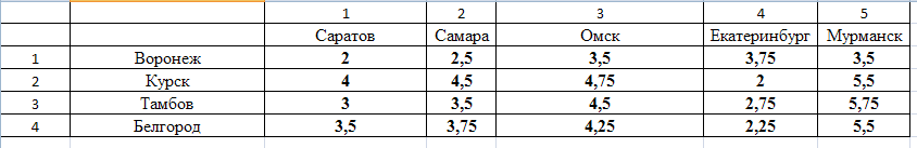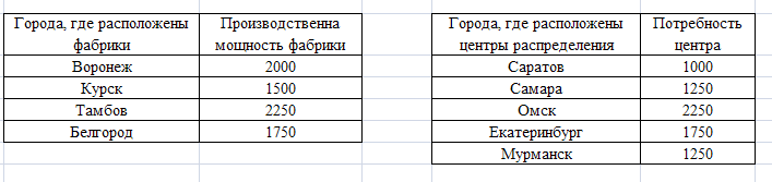 Фабрики и центры распределения товаров расположены в разных городах. Стоимость перевозки единицы продукции между ними (в долларах) известна и приведена на рисунке 58